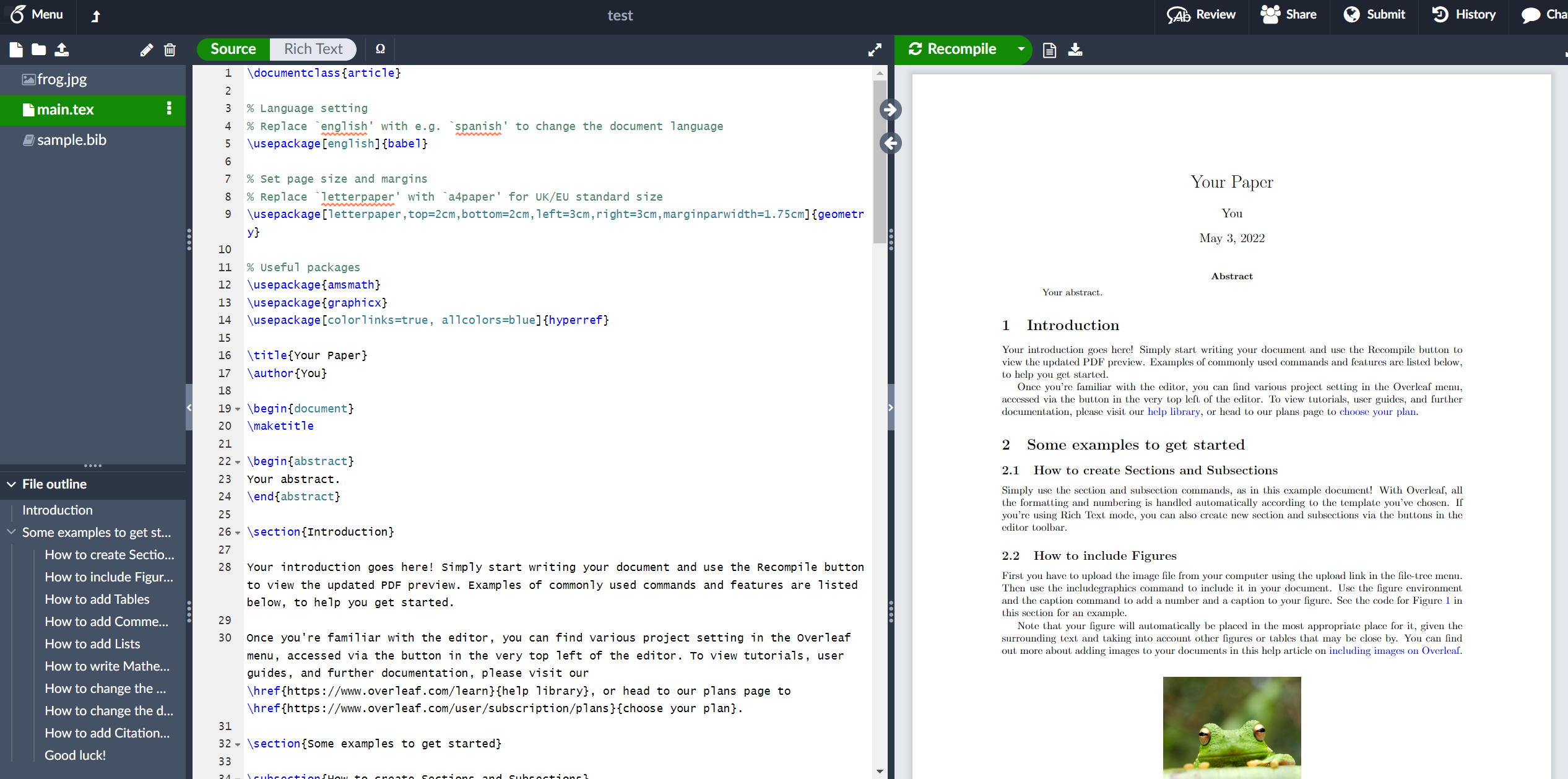 此部分可以参考 overleaf 提供的30分钟入门指南。
