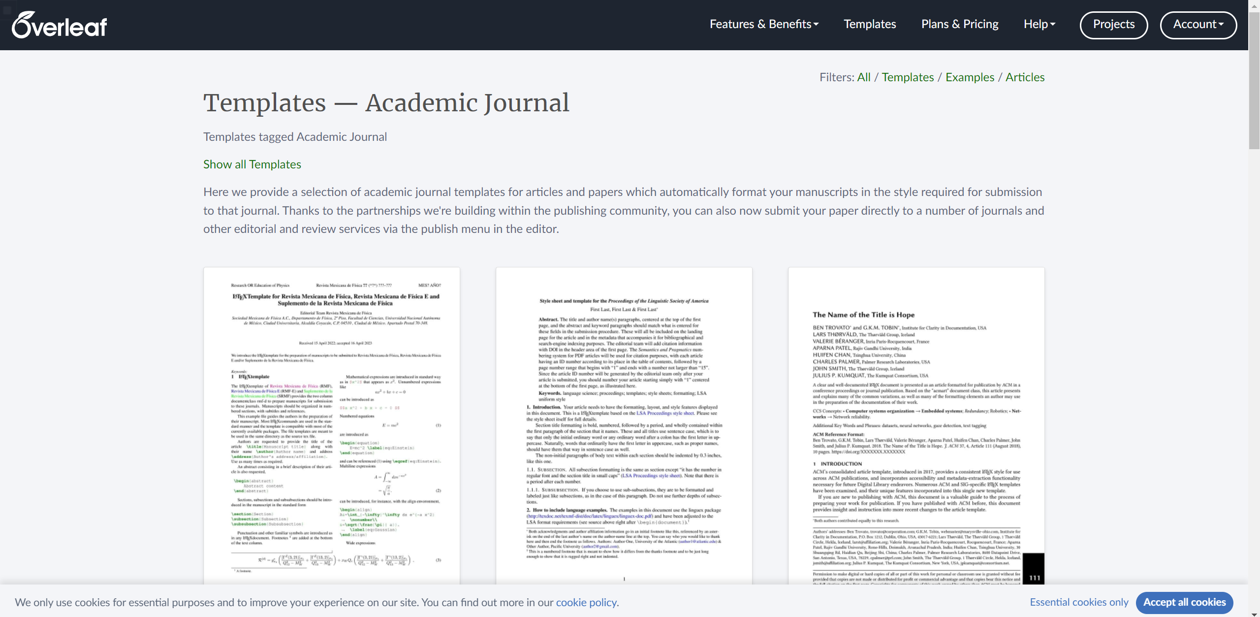 使用 Overleaf 的一大好处是可以方便地套用模板。转到Templates - Journals, CVs, Presentations, Reports and More